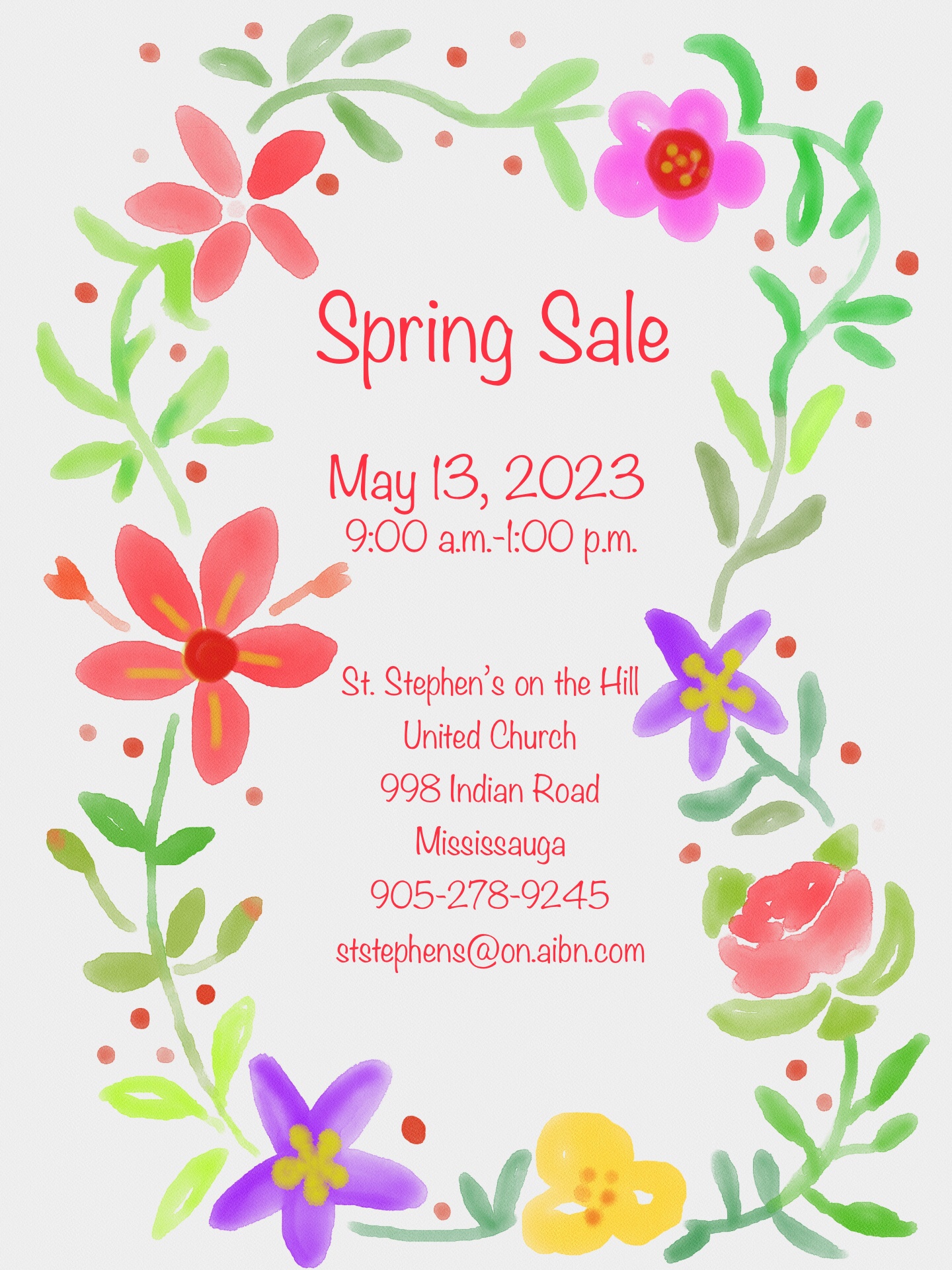 Spring Sale – St. Stephen’s on the Hill United Church May 13 Featured 9:00 am - 1:00 pm Spring Sale – St. Stephen’s on the Hill United Church Free