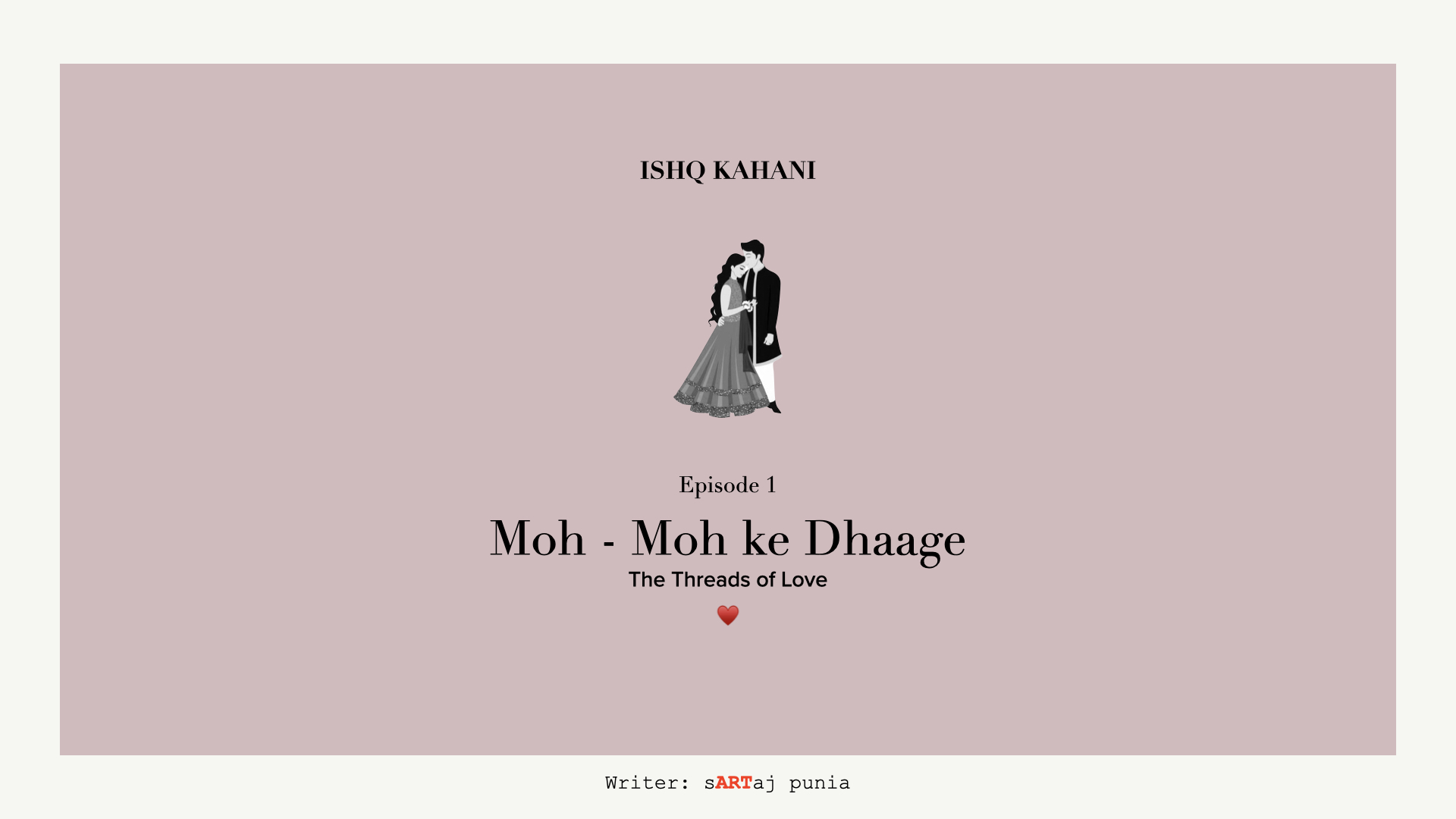 Minesh used the same approach to create the script for our Pilot episode “Moh-Moh Ke Dhaage” (Threads of Love). MMKD is based on a real-life story. The script portrays an essence of truth, honesty, and betrayal using mediums of cinema, poetry, and music.