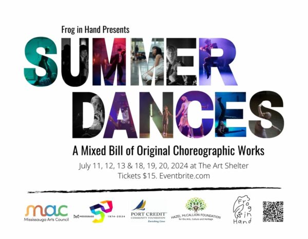 Frog in Hand began with a cast of frogs performing circus tricks under the artistic direction of sisters, Noelle Hamlyn and Colleen Snell, who were one and five years old at the time. From this whimsical debut springs our firm belief that art begins in humble places – including the mud and grass of our own backyards. Although we are now a diverse collective of dancers, choreographers, musicians, actors, spoken word poets, designers and visual artists, we are still inspired by where we find ourselves. We are storytellers, adventurers of landscapes both imagined and real - we are proudly Port Credit based.