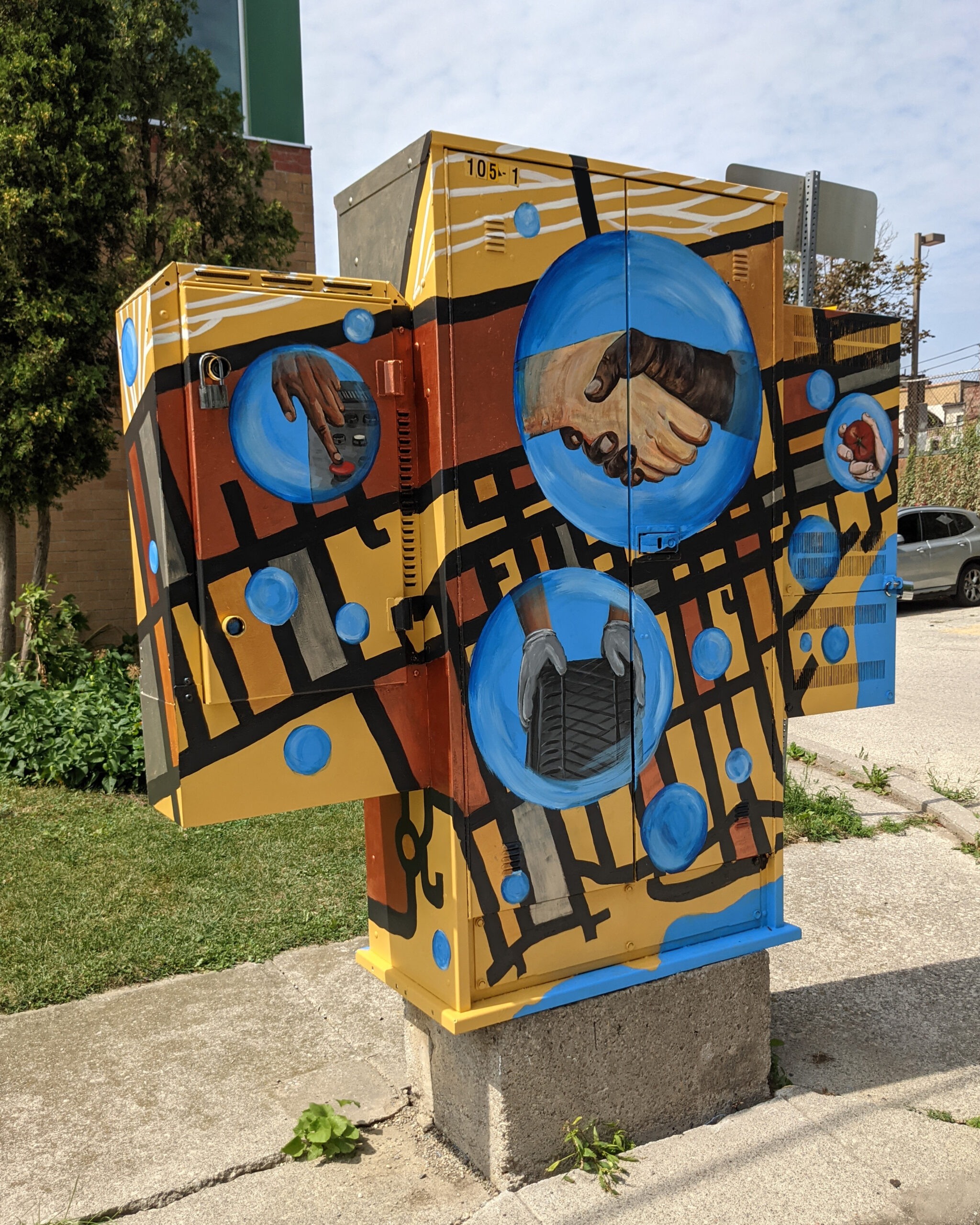 Joanne Feely DeGraaf currently teaches visual art to high school students and continues to explore media, ideas and context in her own artistic practice. She primarily uses acrylic and latex paint to create her own mural art. Her efforts have been recognized by various institutions. This is reflected in awards she has received such as the Peel District School Board’s Award of Excellence (2014) and Distinction (2012, 2016, 2019). Her artwork has been exhibited by various cultural institutions including the Mississauga Living Arts Centre, Art Gallery of Mississauga, Etobicoke Civic Centre and Halton Regional Centre.