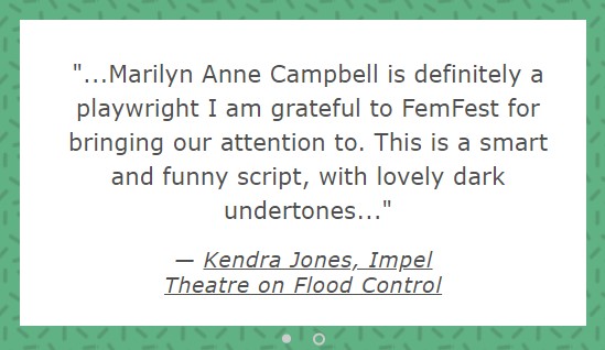 Marilyn's short stage plays have been performed in Halifax, Hamilton, Winnipeg, Calgary, Chicago, New York, Iowa, South Dakota, and Leeds, England. Her Remembrance Day themed script "Failing Hands" was one of three winners of the inaugural National TYA Playwriting Competition held by Storybook Theatre in Calgary (2016). She has been awarded playwriting grants from the Ontario Arts Council's Recommender Grants for Theatre Creators program and from the Toronto Arts Council.