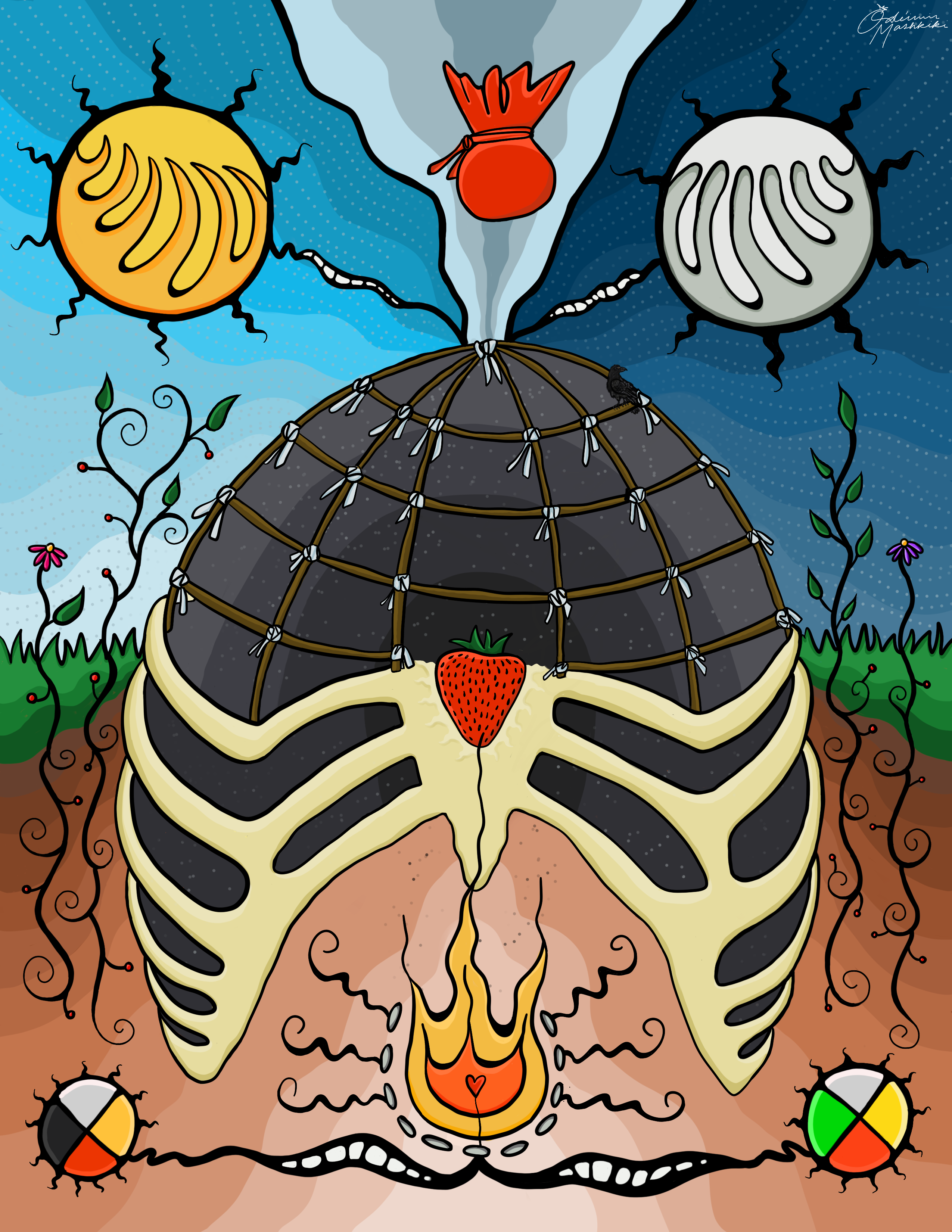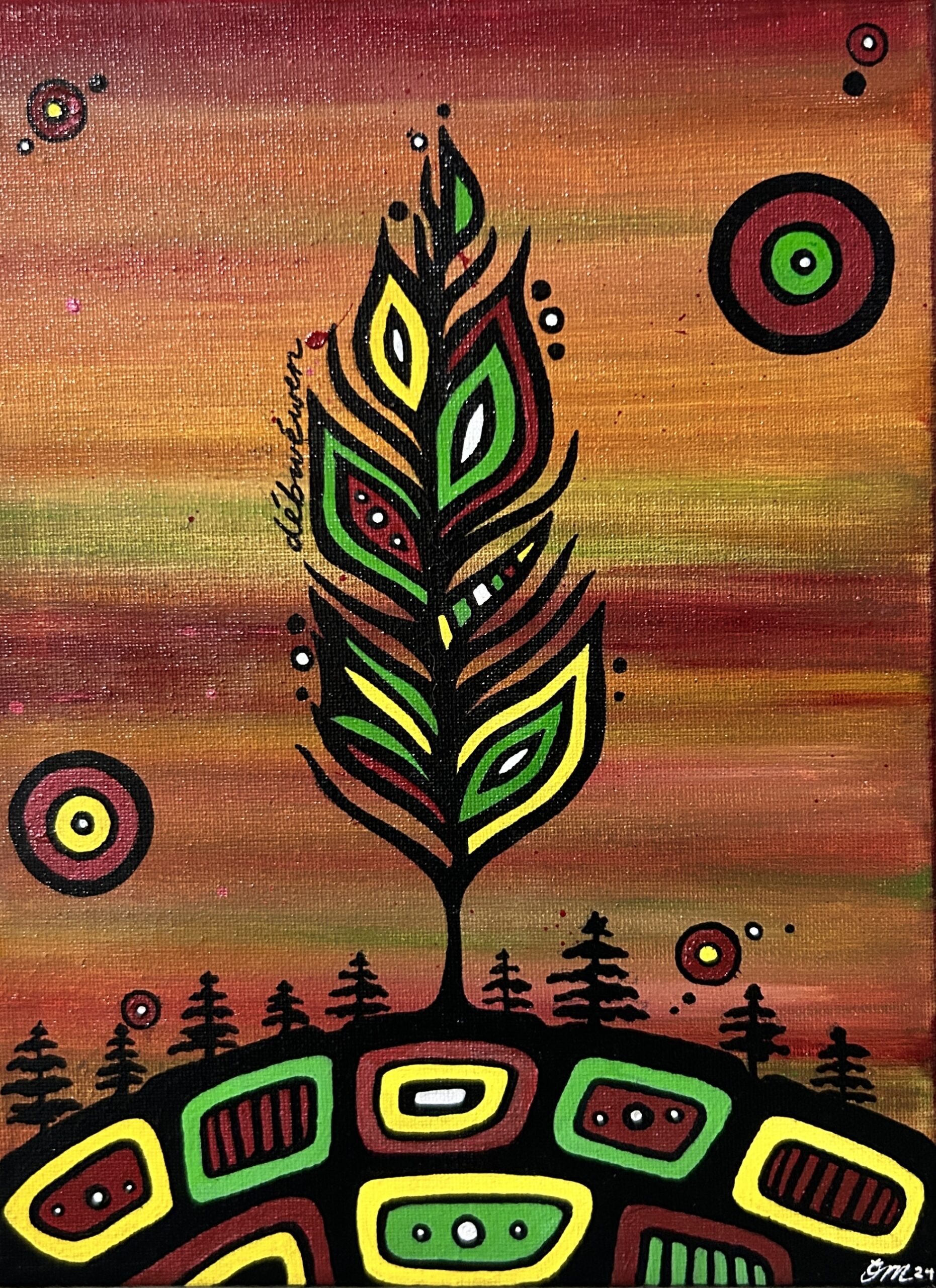Kaitlyn's artistic journey was nurtured from a very young age by their mother, aunties, grandmother, and great-grandmother. Following ancestral traditions, they practice various artistic modalities, including beading, sewing, painting, and drawing. Kaitlyn uses art as a potent healing tool, integrating it with mental health and cultural practices to challenge oppressive systems. Their art creates spaces that promote decolonization and cultural safety, supporting Indigenous kin in healing and celebrating their identities.