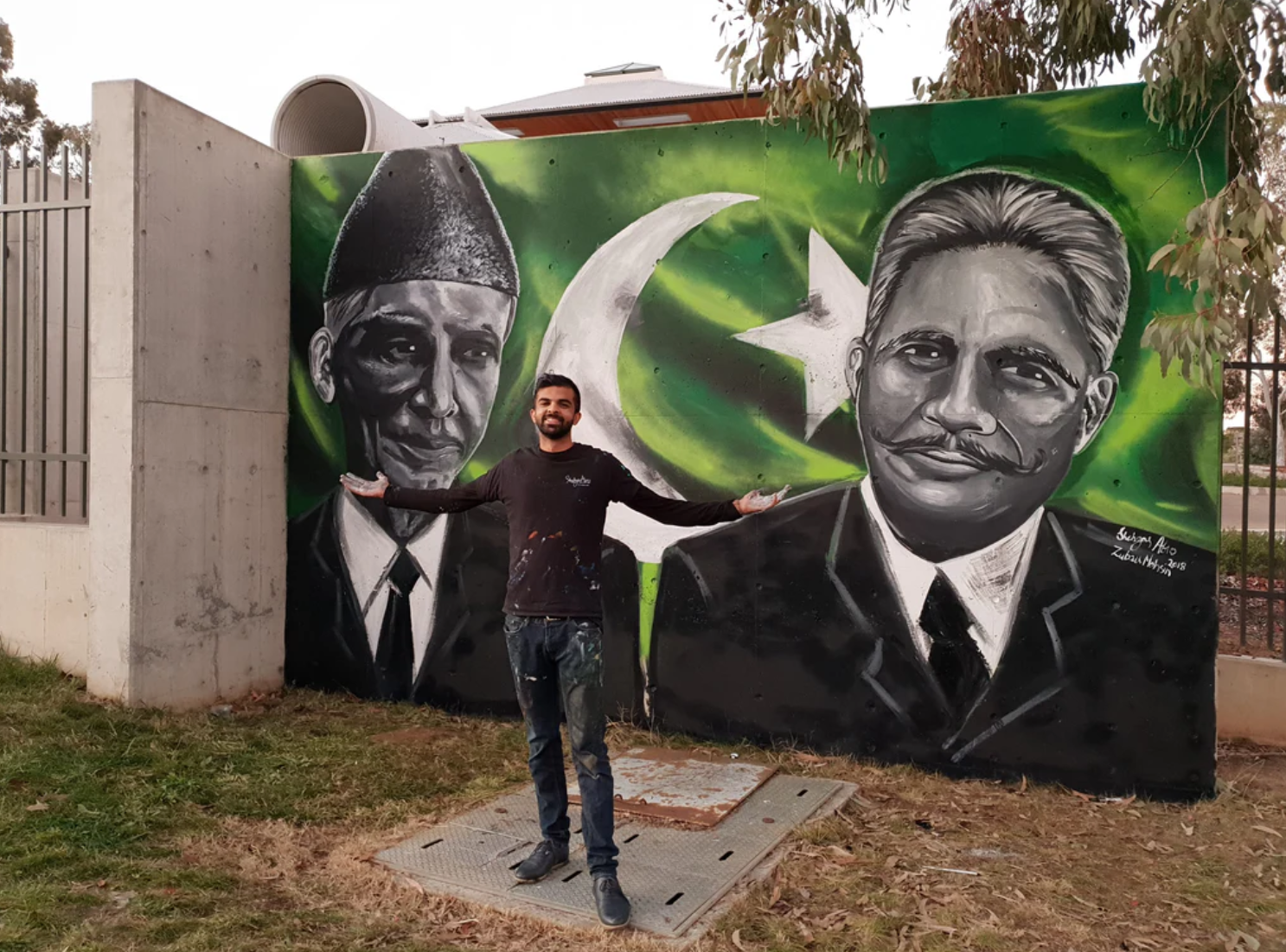 I have exhibited and painted live in various shows in Vancouver, Karachi, Newcastle, Sydney, Adelaide, and Melbourne. In 2018, I was commissioned by the High Commission of Pakistan in Australia to paint a mural on its façade. In collaboration with the Karachi Biennale in 2019, I introduced an Australian mental health initiative at the NJV School in Karachi. I also curated and exhibited at Impact I and Impact II, which were shown at Movenpick Hotel Karachi Art Gallery and Gallery ArtOne62. In 2018, I organized a Pakistani photography exhibition for Consulate General of Pakistan in Sydney, and assisted in curating Jimmy Engineer’s exhibition at the Willoughby City Council in North Sydney.